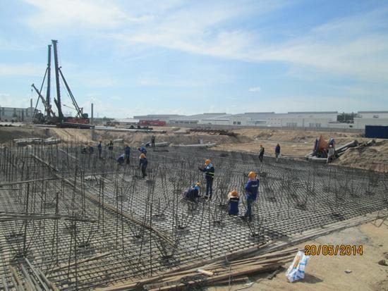 – Kết cấu móng: Bê tông cốt thép toàn khối chiều rộng 31.7m, chiều dài 61m, nằm trên hệ cọc bê tông ly tâm đường kính D500.
